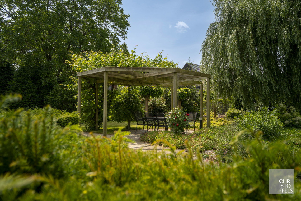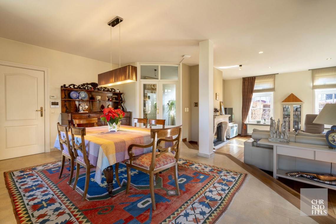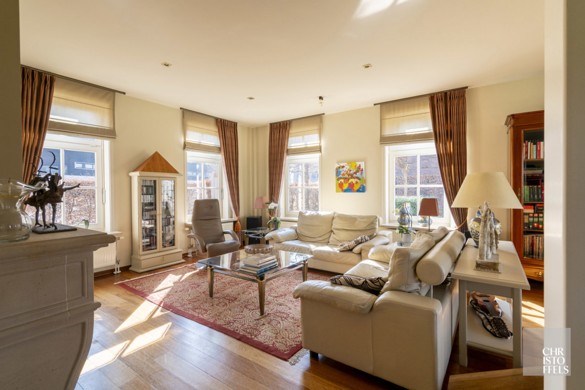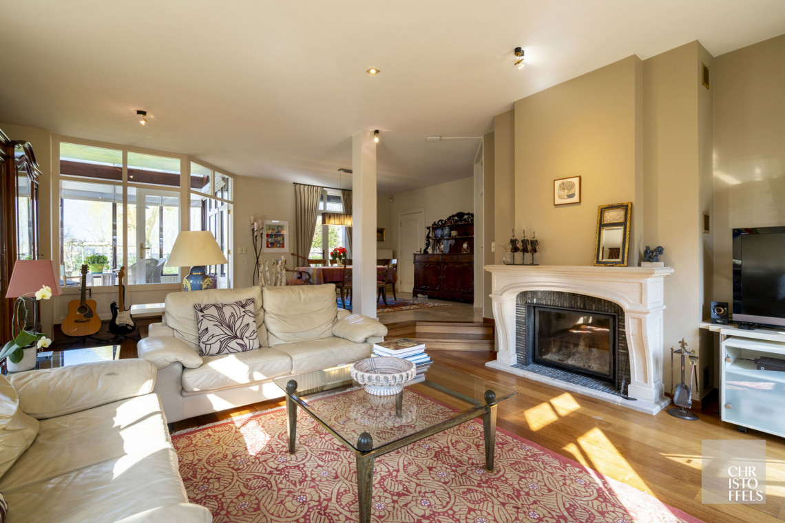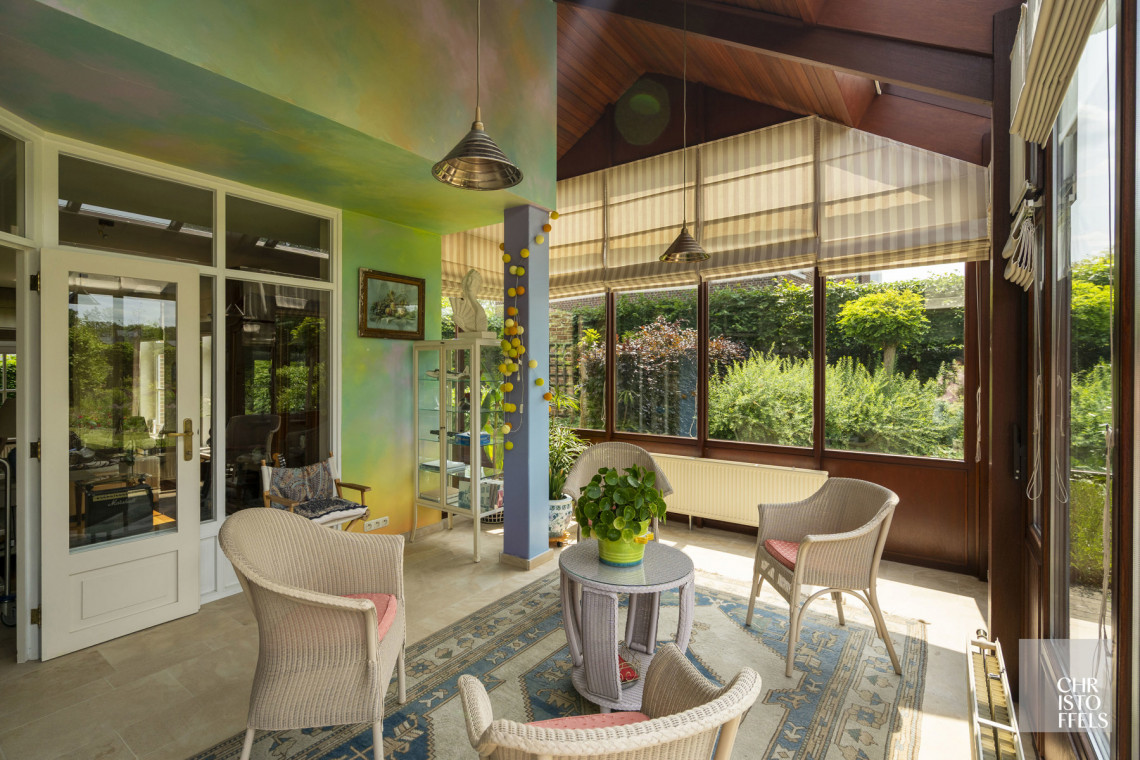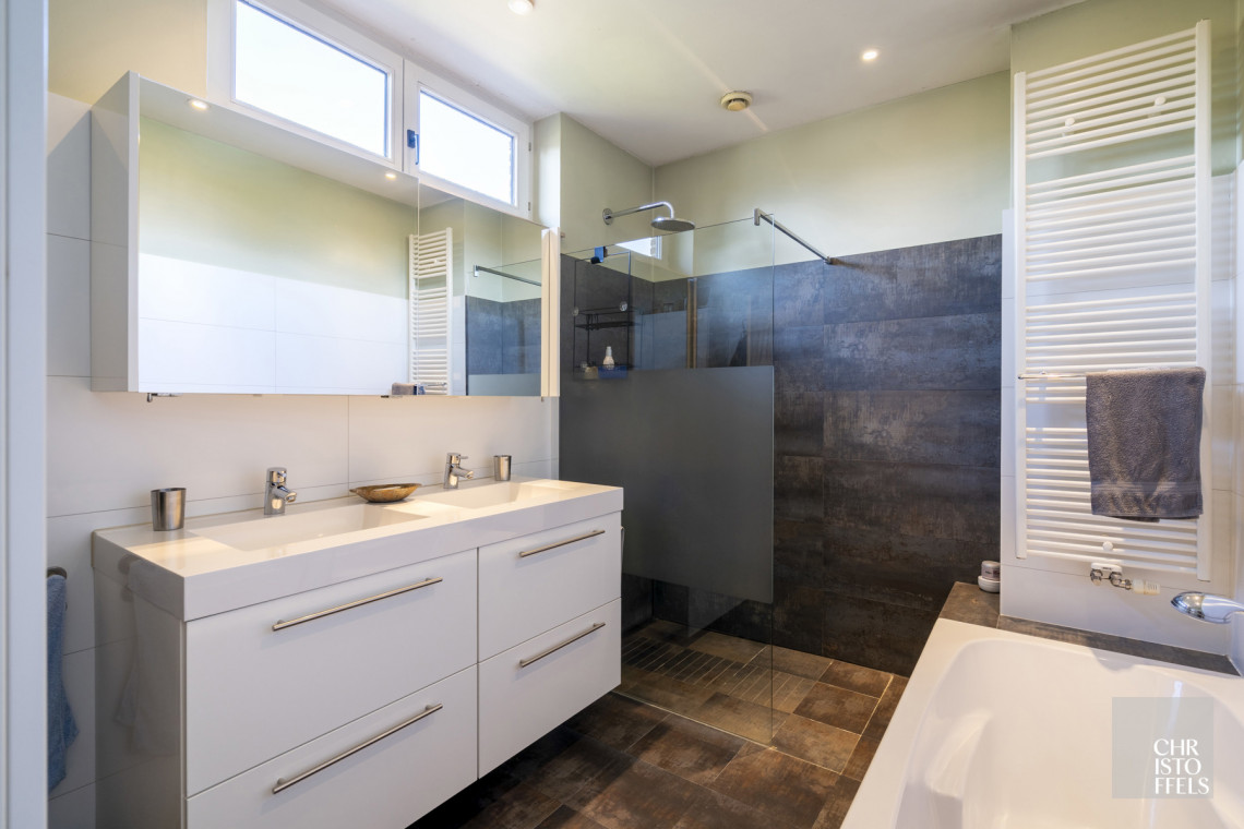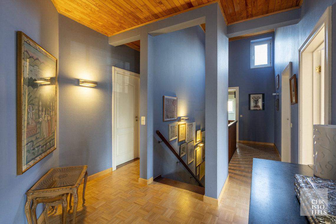 This villa has its own private entrance hall. On the first floor is the entrance hall with guest toilet, a spacious living room with fireplace, a garden room/orangery, a bright dining room and a kitchen. Thanks to the large windows you can enjoy a beautiful view of the garden and terrace. Adjacent you will find a laundry room, storage room and a second toilet.