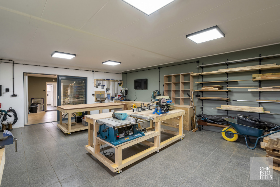 In addition, there is a multipurpose room, spread over two floors, which can be furnished entirely according to your own wishes. Currently, it serves as a relaxation room, but the possibilities are endless. Consider, for example, a studio, practice room or a combination of work and private space. There is also a separate, practical workspace, ideal for a craftsman, DIY enthusiast or anyone who needs extra storage space or a functional workplace.
